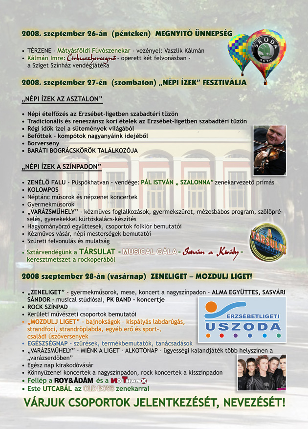 V. Kertvárosi vigasságok 2008. szeptember 26. 2008. szeptember 26-28 között kerül megrendezésre az V. Kertvárosi vigasságok Vissza a hírekhez