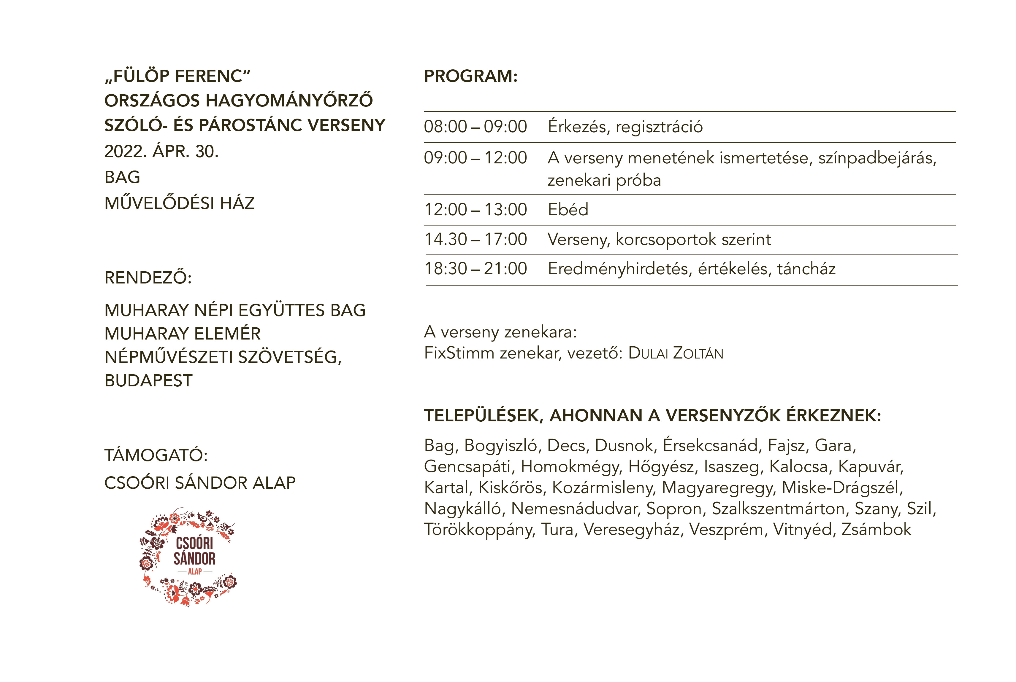 "Fülöp Ferenc" Országos Hagyományőrző Szóló- és Párostánc Verseny, Bag